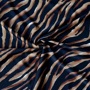 Tauche ein in die schrille Welt der 80er Jahre mit diesem spektakulären, bunten Badelycra. Das abstrakte Muster, dominiert von intensivem Blauviolett mit leuchtenden Akzenten in Orange, Gelb, Grün, Türkis und Aqua, macht diesen Stoff zur ersten Wahl für alle, die auffallen möchten.