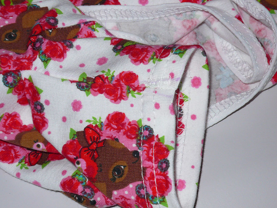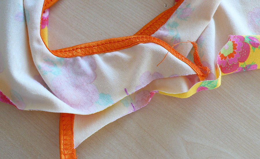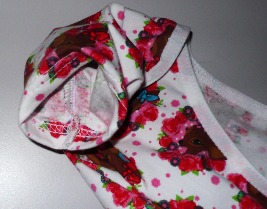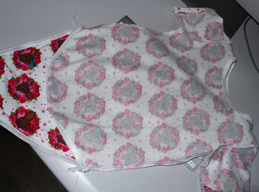 Das nächste Bild zeigt die Falzgummis an den Hals- und Beinausschnitten.