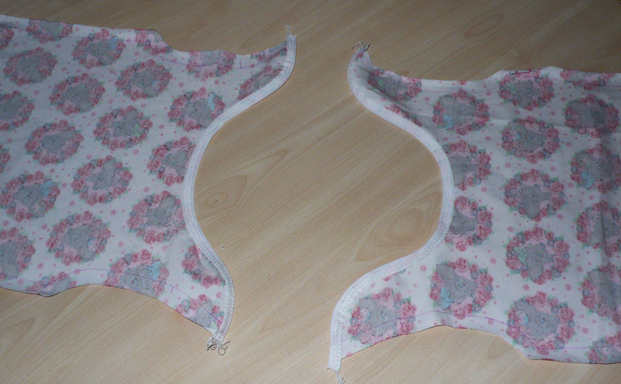 Wenn alles erfolgreich gesäumt ist, sollten wir die Schultern der Vorder- und Rückseite zusammennähen.