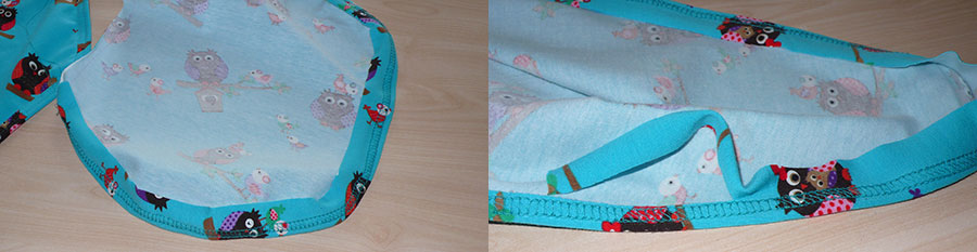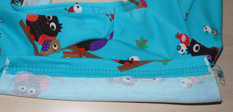 Nahtzugaben an den Ärmeln nach innen klappen und mit einem Step-Zickzack oder mit dem Coverlock festnähen.