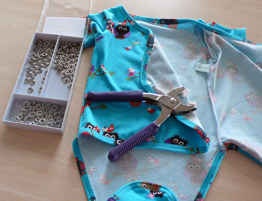Druckknöpfe im Schritt nicht vergessen (insgesamt brauchen wir 7 Druckknöpfe für diesen Body).