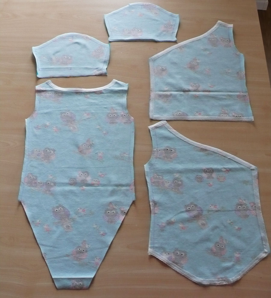 Schultern zusammenstecken und zusammennähen (mit einem Step-Zickzack der Haushalt-Nähmaschine oder mit dem Overlock).