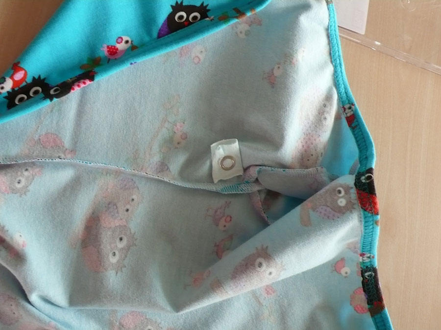 Druckknöpfe anbringen. Bitte gut überlegen, wie ihr die Druckknöpfe anbringt, denn es ist fast unmöglich, sie wieder zu entfernen, ohne dabei den Stoff zu beschädigen.