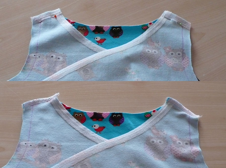 Wickelbody Am Vorderteil muss ich noch einen dritten Druckknopf anbringen, damit der vordere Flügel vom Körper nicht absteht.