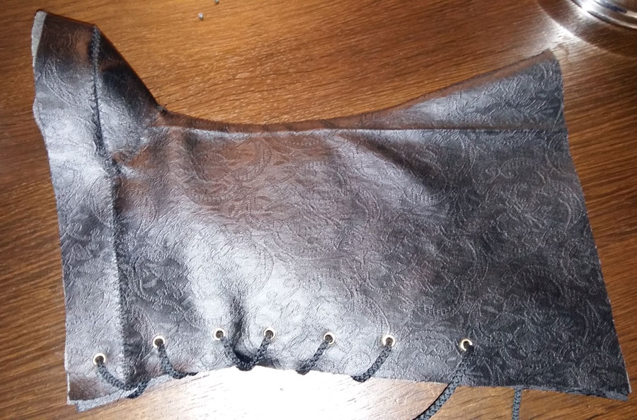 Die Stiefelgamaschen sehen am besten aus, wenn sie aus Kunstleder (falls ihr viel zu viel Kohle habt, aus echtem Leder) sind. Das Problem mit Kunstleder ist, dass er viel zu weich ist. Er müsste etwas fest sein, damit er als Stiefel gut aussieht. Deshalb müssen die Gamaschen gefüttert werden. Wir brauchen (für die Grössen 24-27 bzw. 28-31):