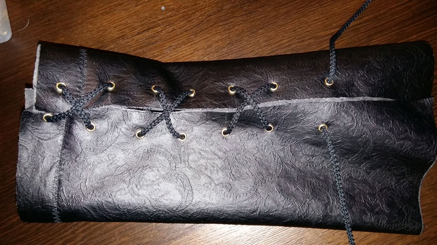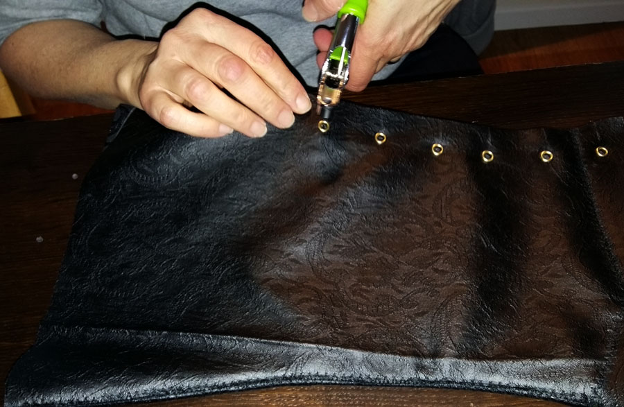 Ösen einfügen (nur bis zum Oberteil des Beins, ab der Höhe, wo der Stoff zurückgeklappt wird, braucht es keine Ösen: