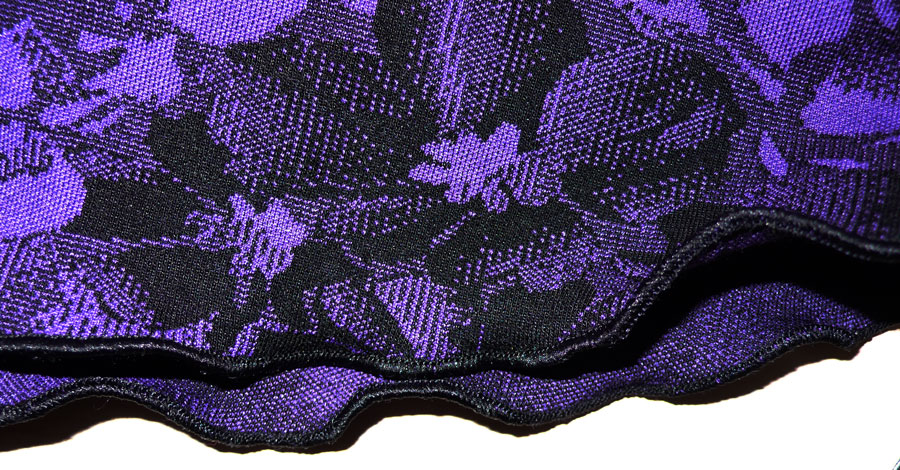 Apropos Rollsaum: Bauschgarn ist wie geschaffen fürs Rollsäumen. Wieso? Gegenfrage: wie sieht denn ein Rollsaum mit Overlockfaden aus? Nicht sehr ebenmässig, oder? Die Naht deckt die Stoffkante nicht vollständig ab. Bauschgarn deckt wegen seiner Textur die gesamte Kante ab und bildet dadurch eine tolle Naht. Ich habe Polytex Bauschgarne im Sortiment. Sie sind gut, günstig, haben tolle Farben (besonders beim Rollsäumen ist manchmal eine schöne, lebhafte Kontrastfarbe wichtig) und sind in drei Längen (500, 1000  und 5000 m) erhältlich. Ausserdem werden sie in der EU hergestellt.