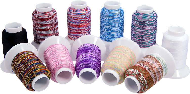 Mehrfarbige Bauschgarne (Regenbogengarn) von Babylock auf 500m Kronen.